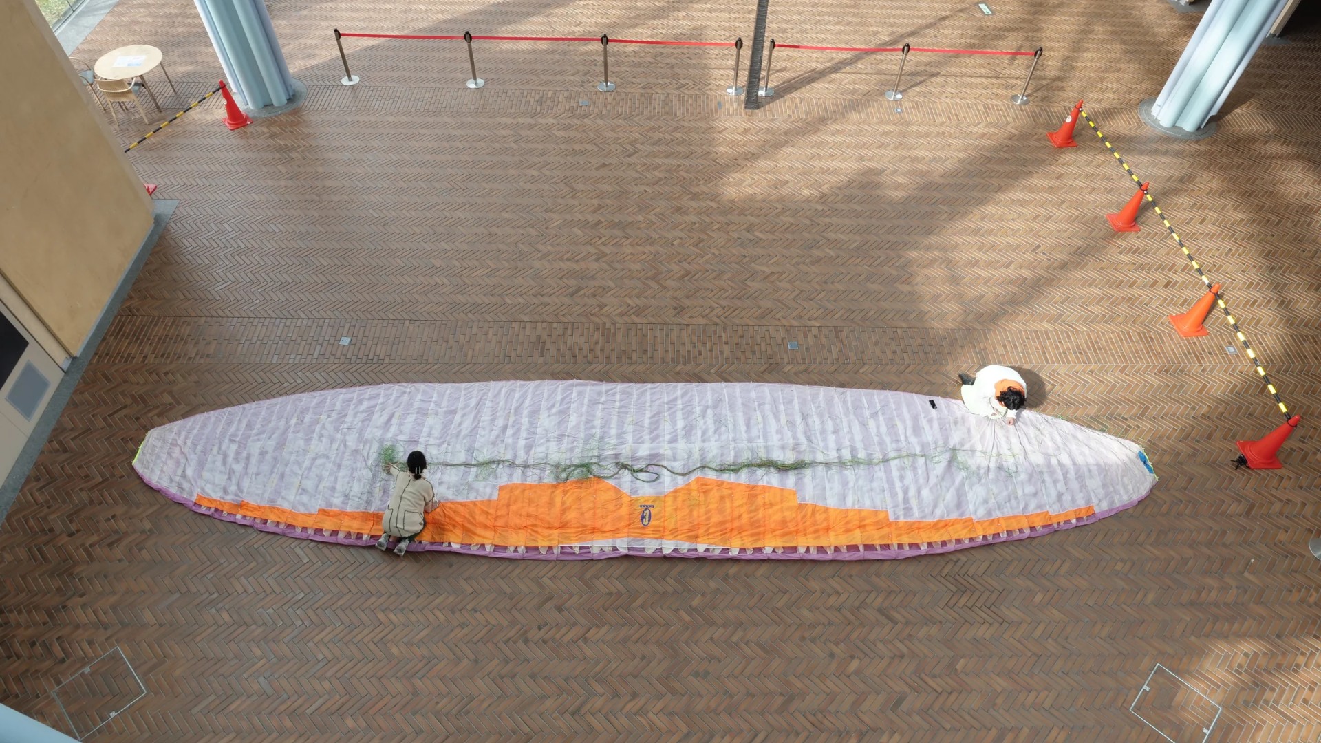 ① パラグライダー解体体験(予約不要)HOZUBAGスタッフとともに、パラグライダーの解体工程を体験いただけます。