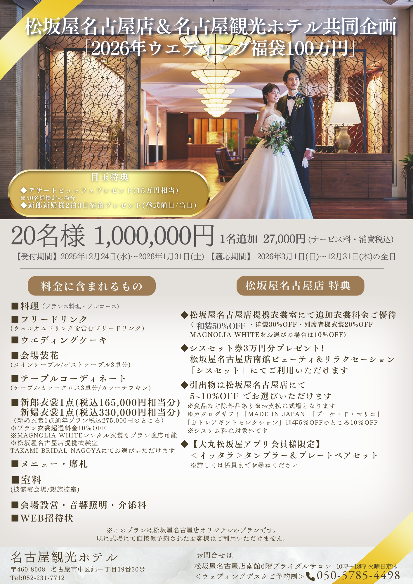 そこで、松坂屋名古屋店と人気ホテル・式場が共同プロデュースした「スペシャルウエディングプラン」をご紹介。