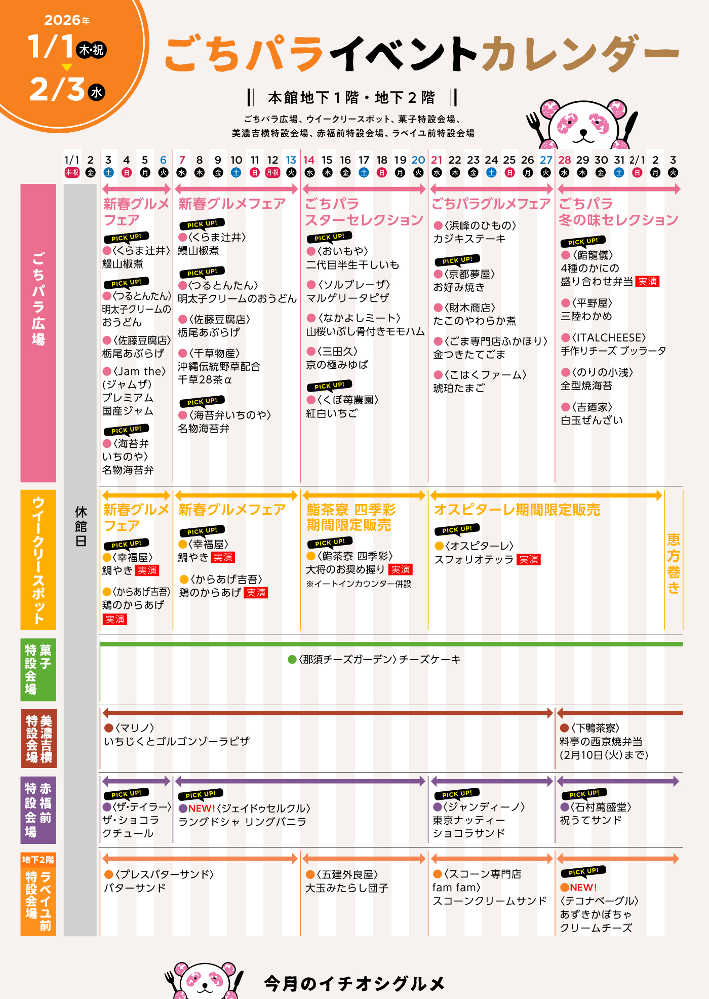 ごちそうパラダイス イベントカレンダー《2026年1月》