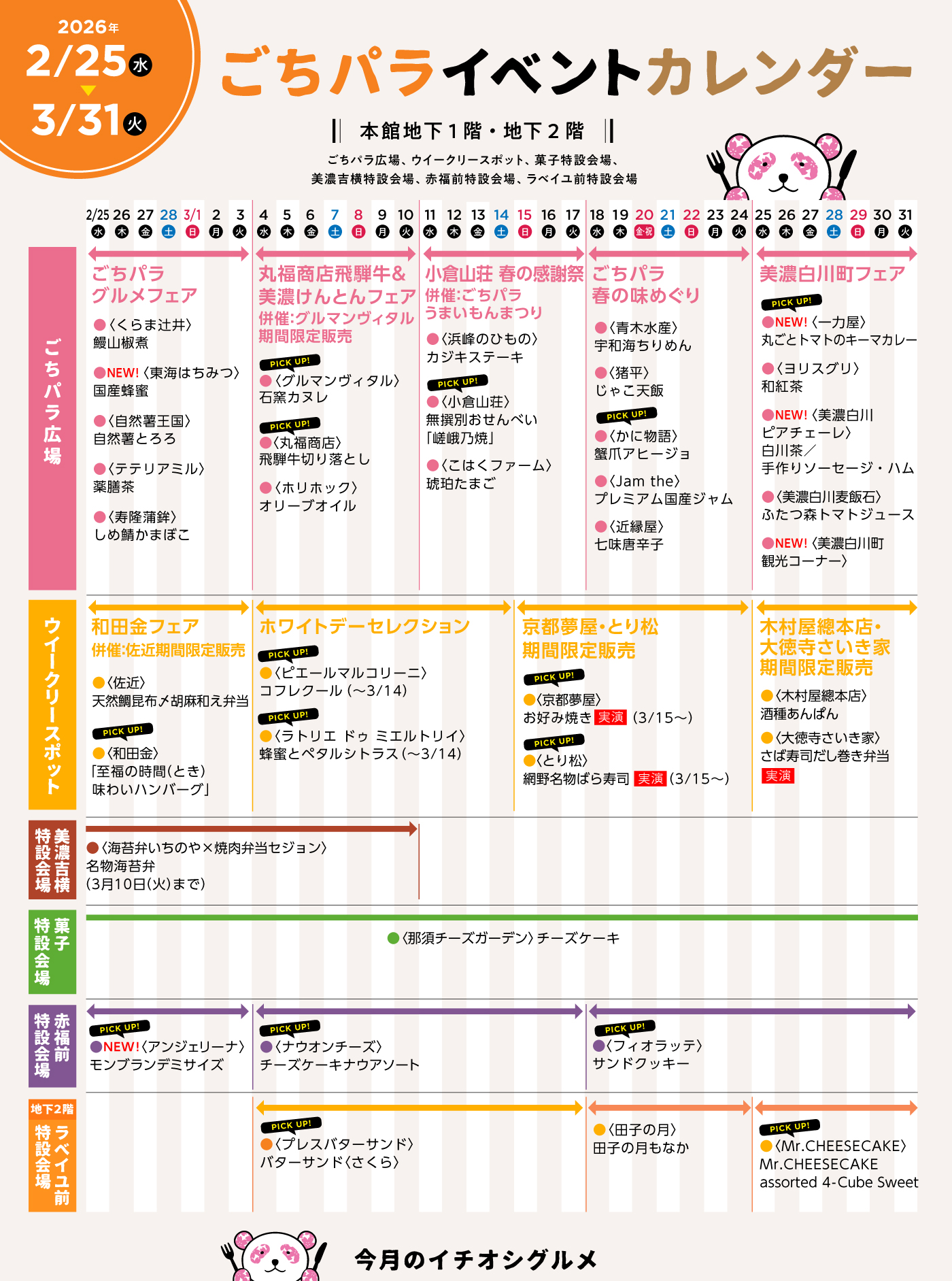 ごちそうパラダイス イベントカレンダー《2026年3月》