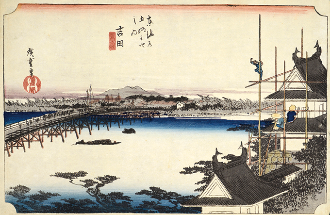 歌川広重「東海道五十三次(保永堂版) 吉田 豊川橋」 24.6×36.5cm