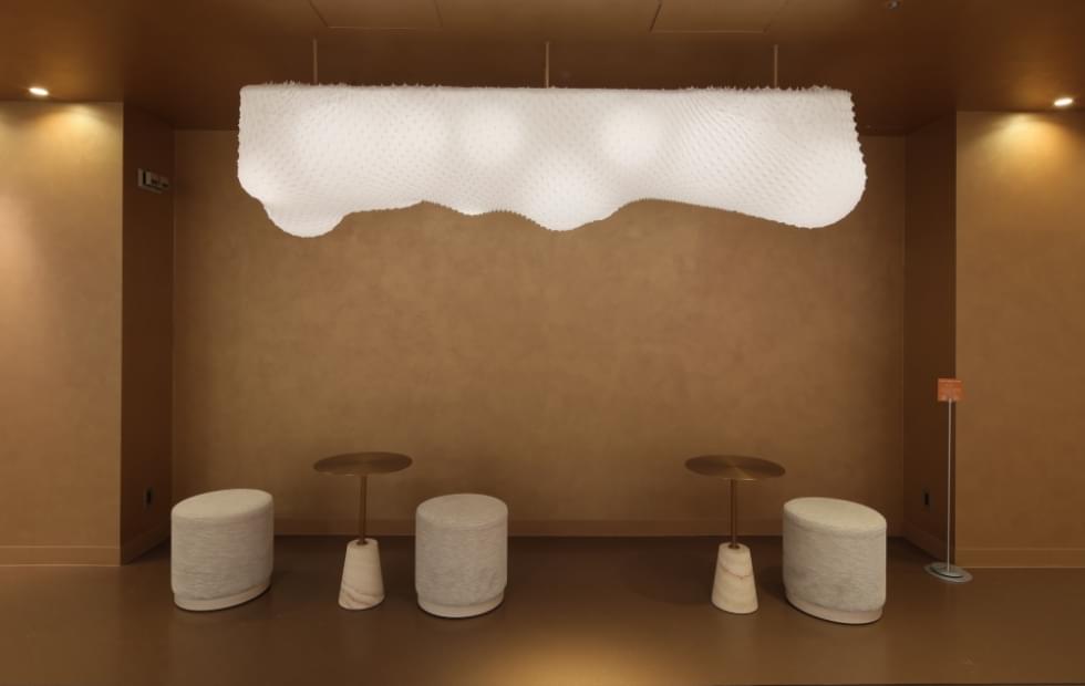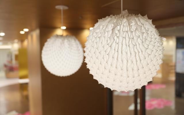 そのような素材と、立体的で自由な表現で作られたオブジェは柔らかな光に包まれる空間を創出します。