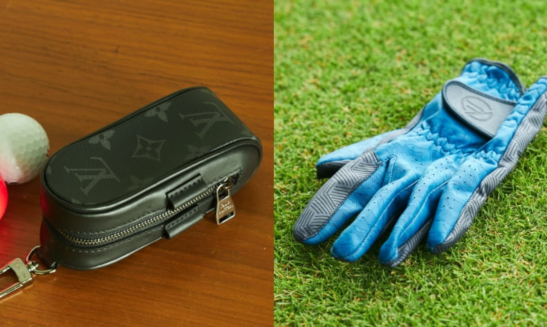 ボールケースはシックなルイヴィトンのモノグラムエクリプスキャンパス。近頃、目が悪くなったのでグリーンで見つけやすい派⼿なボール「キラダイヤモンド」も使っています。ゴヤールのボールケースも持っていますが、ガムを入れてゴルフバッグに掛けています。ハイブランドは、小さなアイテムでチラッとさせるくらいがほどよいですね。