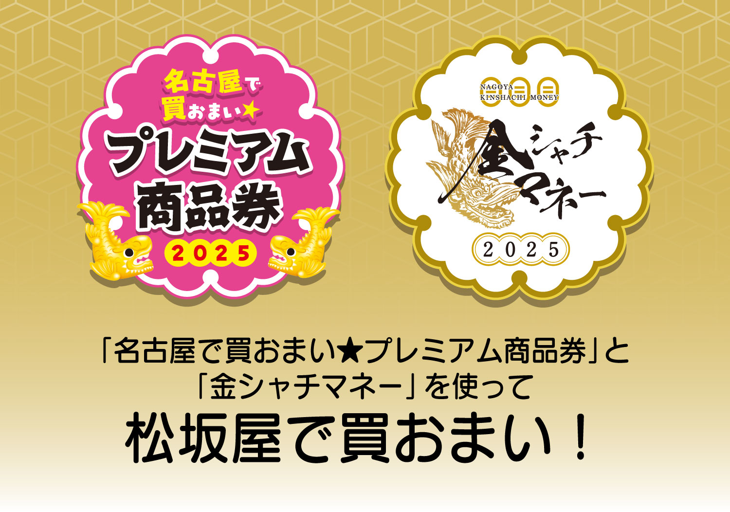 「名古屋で買おまい★プレミアム商品券」「金シャチマネー」を お使いいただけます!