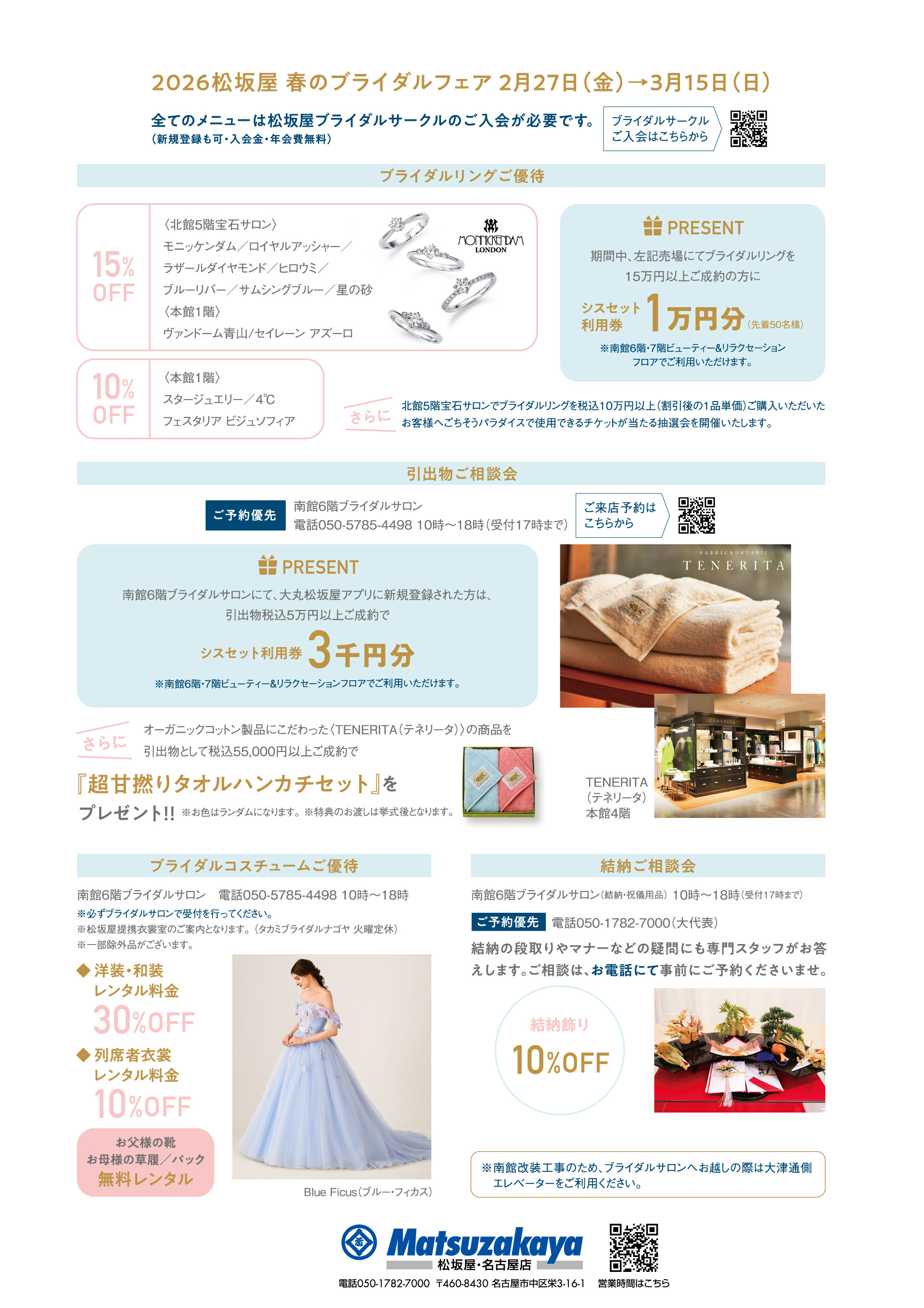 2026年春のブライダルフェア2026年2月27日(金)→3月15日(日)|松坂屋名古屋店