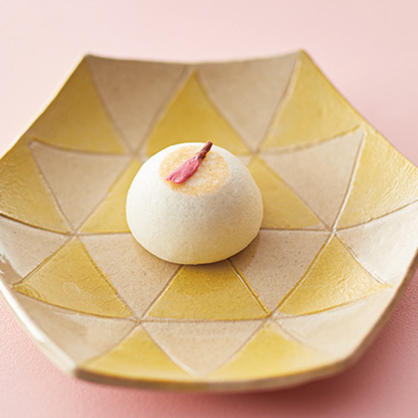 瑞々しいこし餡をふっくらとした生地でつつみ、ほんのりと焼き目をつけ、春らしく塩漬けの桜を添えました。彩りの美しい桜の花びらで季節感を添えた素朴なお饅頭です。