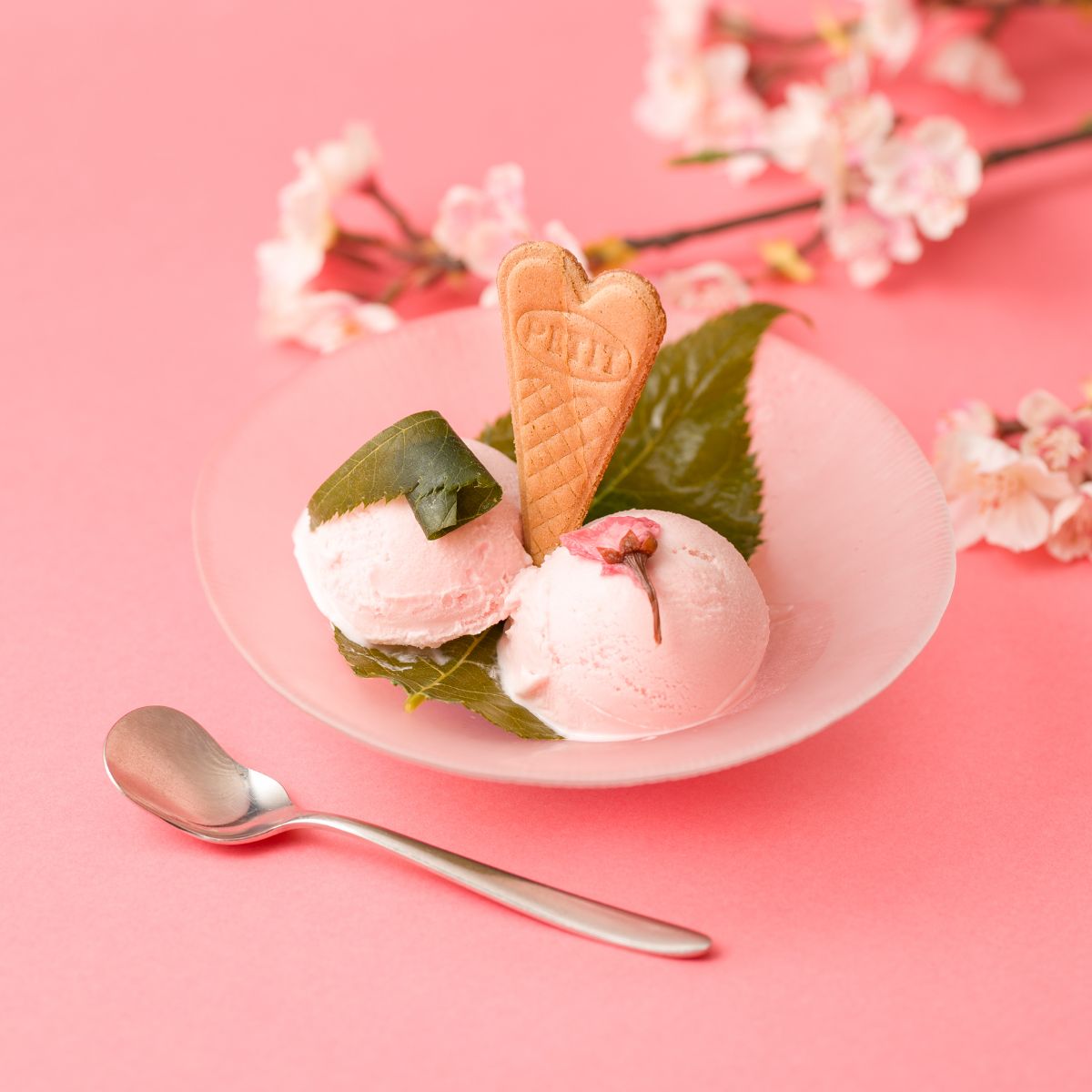 さくらのシロップと、さくらの花を漬けた春のアイスクリーム。