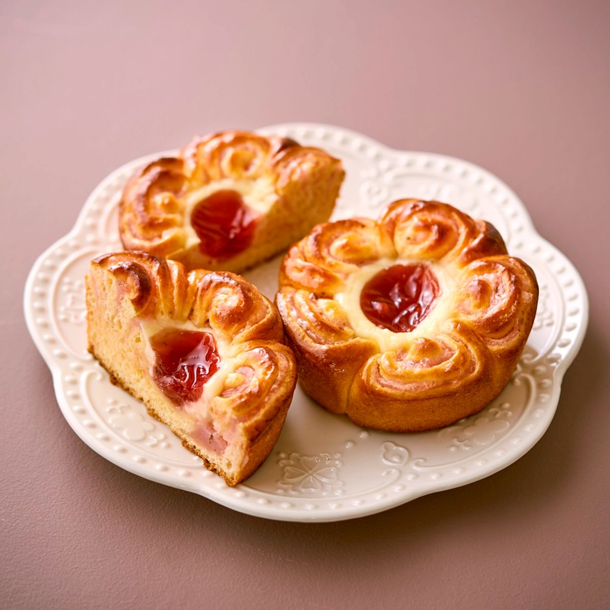 バターと卵をたっぷり使ったリッチな風貌のパンにフランボワーズジャムと濃厚なチーズクリームを合わせました。