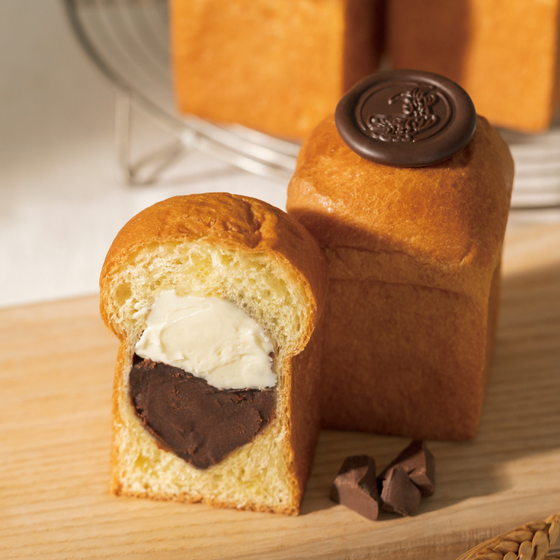 あんバターチョコレートをブリオッシュ生地で包み焼き、さらにホイップバターを加えました。