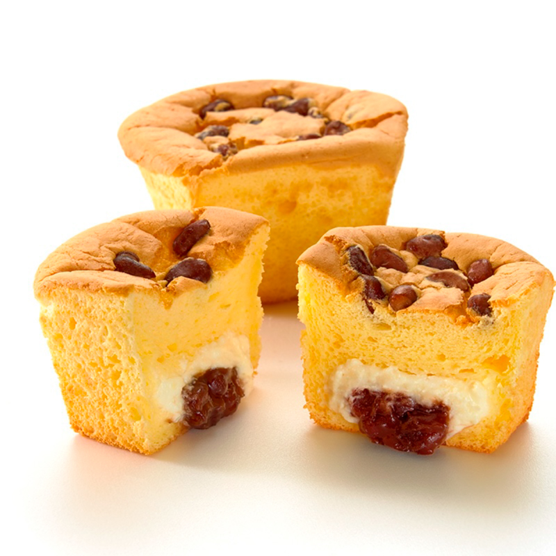 ふわふわのカステラシフォンに北海道産小豆の粒あんと、ほんのり塩味のきいたバタークリームを詰めました。