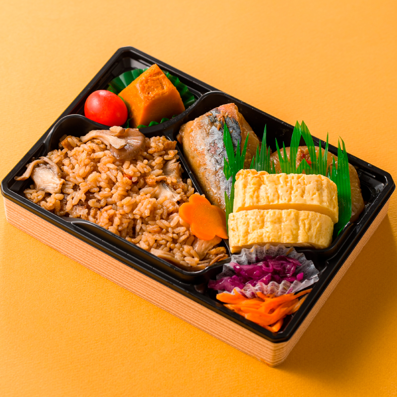 味噌入り出し巻き玉子、八丁味噌の炊き込みご飯、鯖の味噌煮が入った味噌づくしのお弁当をお楽しみください。