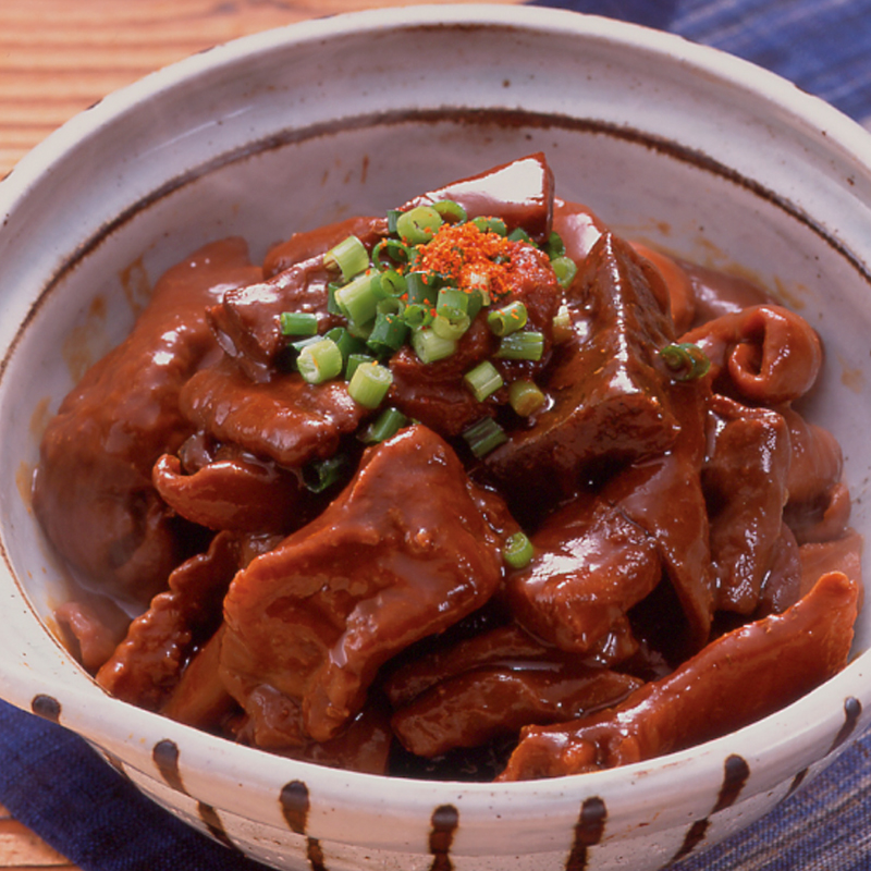 豚モツとこんにゃくを赤味噌ベースの合わせ調味料でじっくり煮込んだ名古屋めしです。おかず、おつまみにおすすめなお惣菜です。