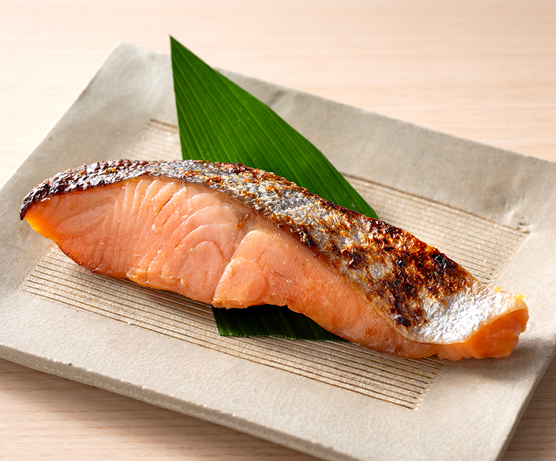 液体天然ガスを冷却する際の“冷たい海水”を再利用し、サーモンを陸上養殖。脂のり上品な身を<鈴波>伝統の粕床で漬け込みました。