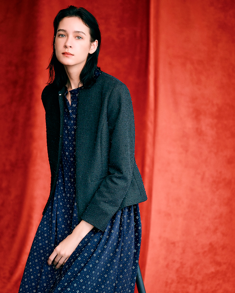 和紙を使用した意匠糸を使い、ラメ入りの上品な光沢感のあるファンシー素材。