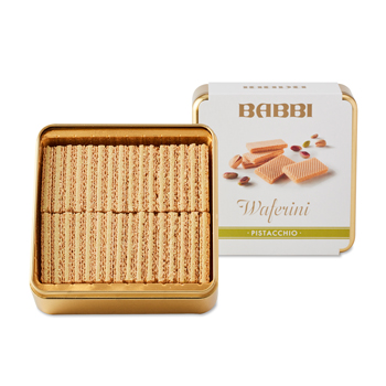 きめの細かいウエハースにピスタチオクリームをサンド。食べやすい大きさにカットし缶に詰め合わせました。BABBIスイーツを象徴する上質な味わいです。