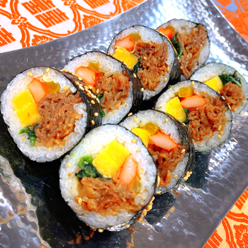大阪・鶴橋から本場の味をお届けいたします。甘辛のたれで仕上げた焼肉が入った、キンパは絶品です。