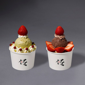 パフェ佐藤自慢の自家製アイスを主役にした、イベント限定ミニパフェ。北海道産ソフトやジュレなどをカップに忍ばせて味わい豊かに仕上げました。