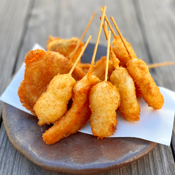 クロワッサン生地で巻いて揚げた串カツは冷めても美味しいのが特徴です。