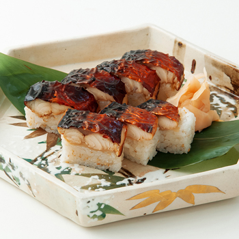 身厚の鯖を秘伝のタレに浸けこみ焼きあげました。