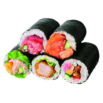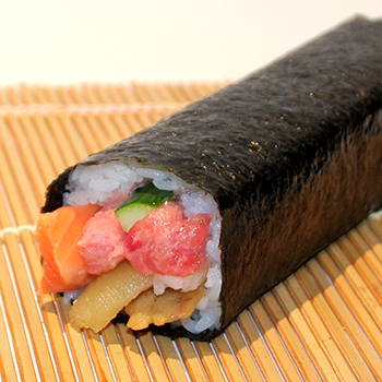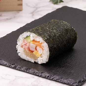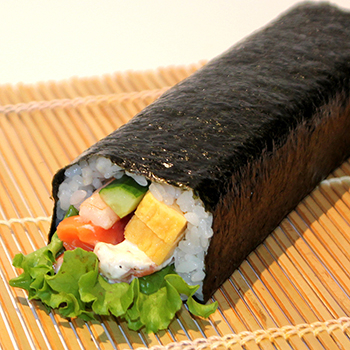 - サーモン、クリームチーズ、厚焼き玉子、海老、きゅうり、グリーンカール入