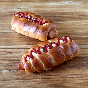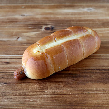 - パリッとした食感のあらびきタイプのウインナーを包んで焼きあげました。