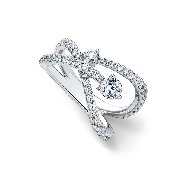 1976年リリースの多面体カットの先駆けが〈D&D144〉です。普通のダイヤモンドは58面カットでテーブル面(表側)に光を集める特徴を持ちますが、144面カットはパビリオン(裏側)の細かなカット面が光をより取り込み全体が光輝くダイヤモンド。身につけて動いた時でもキラキラと輝くダイヤモンドです。