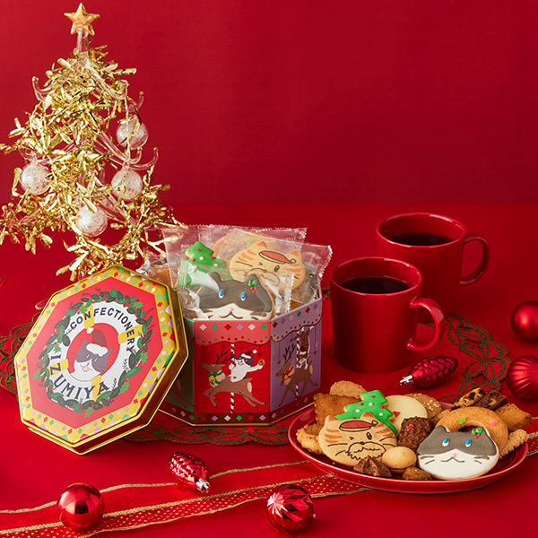 〈泉屋〉の昔から変わらぬ味で人気のクッキーを詰めた可愛らしいクリスマス缶です。