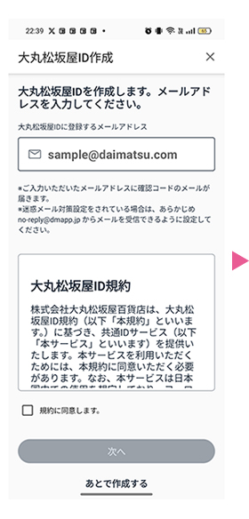大丸松坂屋ID規約をお読みいただき、規約に同意に✓を入れる。