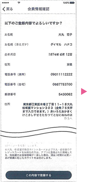 ❻入力内容を確認のうえ、「この内容で登録する」をPushし、本登録が完了。