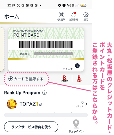 アプリ本登録完了後に、大丸・松坂屋のクレジットカード・ポイントカードのご登録が可能です。カードをご登録される際のご不明点はモバイルサポート0570-033-755までご連絡をお願いいたします。