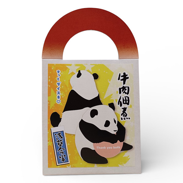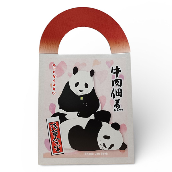 〈浅草今半〉オリジナルパンダパッケージ。佃煮が2種類入っています。