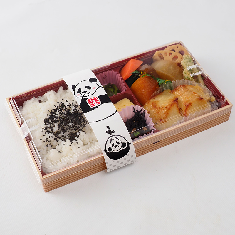 〈まつおか〉オリジナルパンダ掛け紙を全てのお弁当にお掛けいたします。
